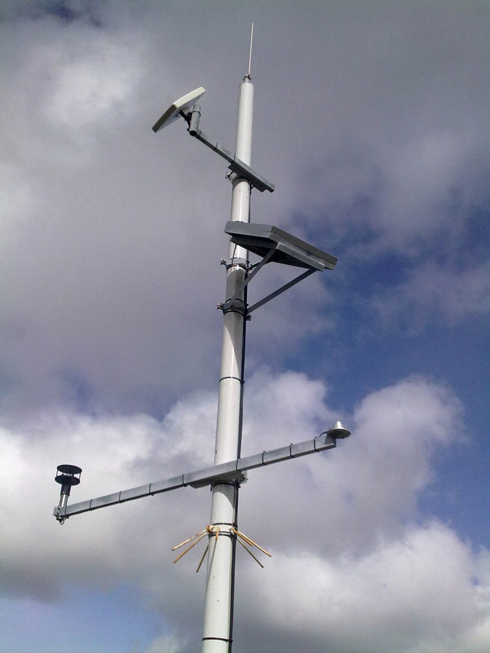 Instalação e configuração de sensores de nível, de radiação, de temperatura e humidade do ar, temperatura da água, de velocidade e direção do vento e de pluviosidade;