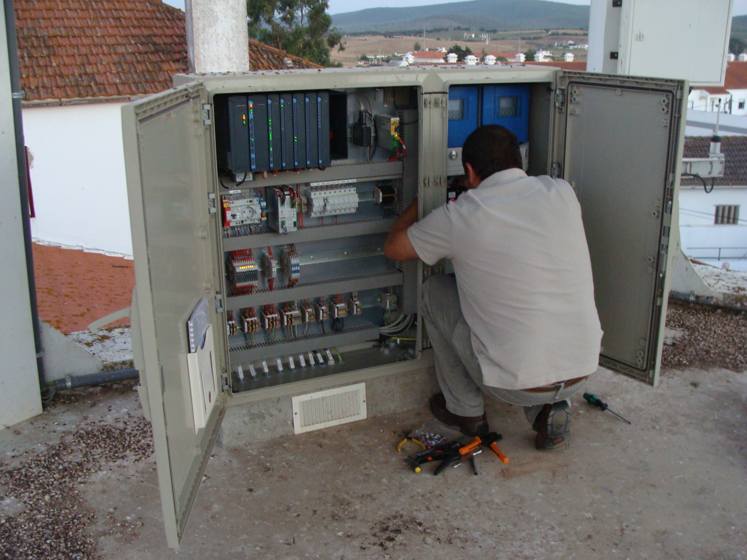 Instalação de medidores de caudal, de nível, de pressão e de cloro;