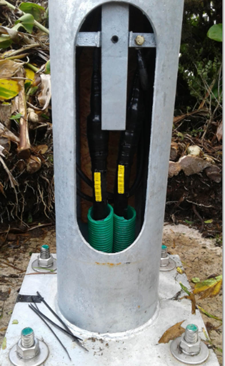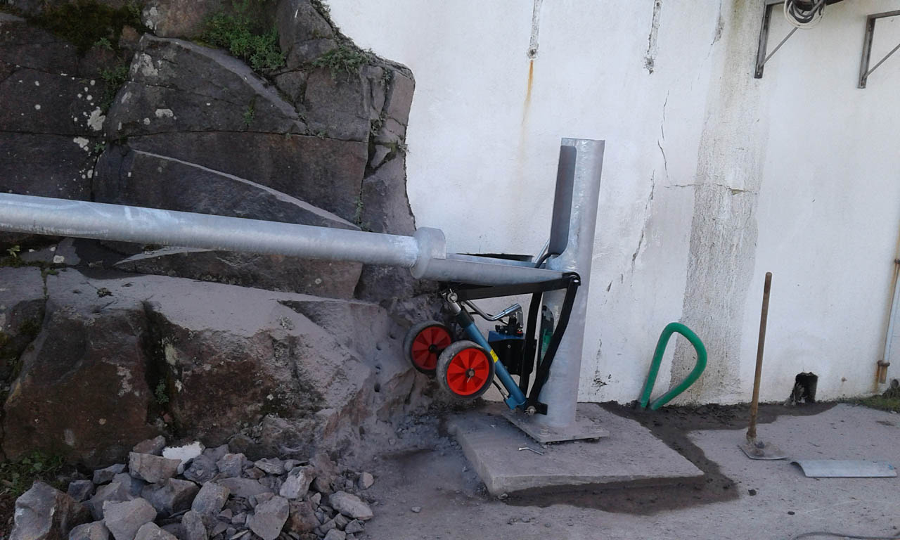 Fornecimento e montagem de mastros tubulares rebatíveis via recurso a acessório hidráulico;