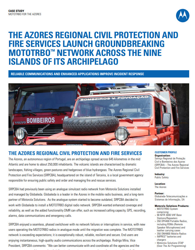 Projeto da rede rádio de emergência do arquipélago dos Açores com equipamentos Motorola MTR3000 funcionando em IP SITE CONNECT (76 Repetidores);